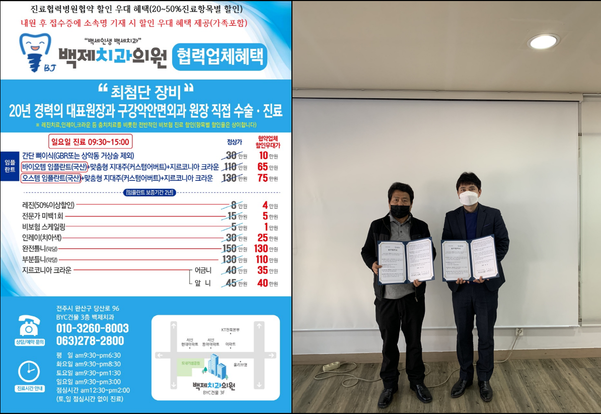Áö³ 2020³â 10¿ù Àü±¹ÀÏÀÚ¸®Çùµ¿Á¶ÇÕ¿¡¼ ¹éÁ¦Ä¡°ú¿ÍÀÇ Áø·á ¹× °ËÁø °ü·Ã ¾÷¹«Çù¾à½Ä(MOU)ÀÌ ÁøÇàµÇ¾ú½À´Ï´Ù.